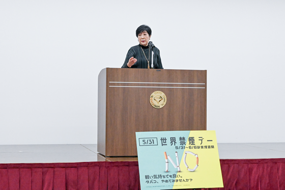 At an event held in Tokyo on May 31, World No Tobacco Day, Governor Koike declared that the Tokyo Metropolitan Government will continue taking measures to promote non-smoking and prevent passive smoking, to create a society in which people enjoy an active, healthy, long life.