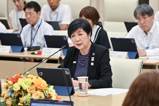 At the meeting, the second for this fiscal year, the governor noted, “Temperatures have reached 41 degrees Celsius in various locations, including Tamba in Hyogo Prefecture and Isesaki in Gunma Prefecture, bringing sweltering heat. The other day, I had a talk with U.N. Secretary-General Antonio Guterres at the United Nations Headquarters in New York. He spoke very ardently about the climate change issue, and we shared a sense of crisis over this issue.”