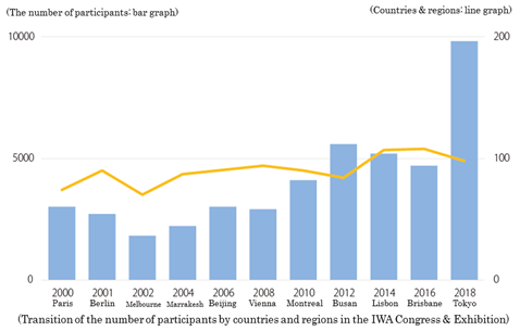 In addition to the oral and poster presentations in the 2018 Tokyo Congress, Forums, Workshops, etc. were also held. Moreover, 9,815 people participated from 98 countries and regions in the world, which was the largest number of participants in the past IWA World Congresses & Exhibitions.