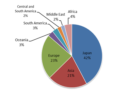 The number of delegates was 2,846 amongst all the participants in the World Congress.  A little more than 40% of delegates were from Japan, and then a great number of delegates attended from Europe and Asia excluding Japan. As with the past World Congresses, there were a large number of delegates from the host country and surrounding in Asia particularly from China, South Korea, and Taiwan.
